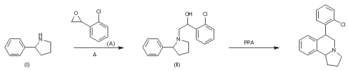 2-Chlorostyrene oxide is condensed with 2-phenylpyrrolidine in refluxing ethanol, and the resultant amino alcohol (II) is cyclized in polyphosphoric acid at 100 C to a mixture of two diastereomeric amines. The desired diastereomer, the minor component (ca. 25%), is separated readily by preparative HPLC. The hydrobromide salt crystallizes from 2-propanol on treatment ot the free base with the requisite amount of 48% HBr.
