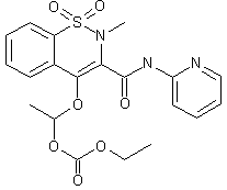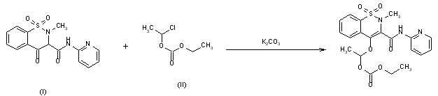 By reaction of piroxicam (I) with 1-chloroethyl ethyl carbonate (II) by means of K2CO3 in refluxing acetone.