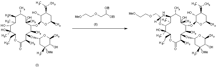 By cyclocondensation of erythromycylamine (I) with 2-(2-methoxyethoxy)acetaldehyde diethylacetal (II) in dioxane.
