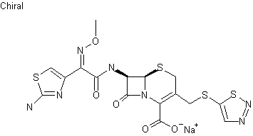 The condensation of 7-aminocephalosporanic acid (I) with sodium 1,2,3-thiadiazole-5-thiolate (II) gives 7-amino-3-[1,2,3-thiadiazol-5-ylmethyl]-3-cephem-4-carboxylic acid (III). Following the first step, condensation of (III) with 2-(2-chloroacetamidothiazol-4-yl)-sulfanyl-(Z)-2-methoxyiminoacetyl chloride hydrochloride (IV) followed by deprotection with sodium N-methyldithiocarbamate (V) affords sodium 7-[(Z)-2-(2-aminothiazol-4yl)-2-(methoxyimino)acetamido)-3-(1,2,3-thiadiazol-5-ylsulfanylmethyl)-3-cephem-4-carboxylate.