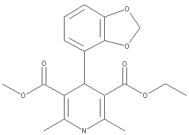 The cyclization of 2,3-dihydroxybenzaldehyde (I) with dibromomethane by means of KF in hot DMF gives 2,3-methylenedioxybenzaldehyde (II), which is condensed with ethyl acetoacetate (III) by means of piperidine and acetic acid in refluxing benzene to afford ethyl 2-acetyl-3-(2,3-methylenedioxyphenyl)acrylate (IV). Finally, this compound is cyclized with methyl 3-aminocrotonate (V) in hot isopropanol.