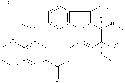 Tabersonine (I), isolated from plant material, reacted with disuccinoyl peroxide in methanol - HCl - water gives the rearranged product (II). Dehydration of (II) with formic acid and acetyl chloride in CH2Cl2 yields the ester (III), which is reduced with LiAlH4 to the alcohol (IV). Finally, acylation with 3,4,5 trimethoxybenzoyl chloride (V) results in RGH-4417 (VI).