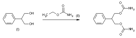 By an ester-exchange reaction between 2-phenylpropane 1 3-diol (I) in ethyl carbamate (II).