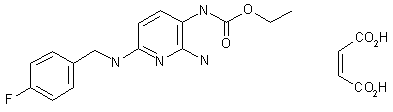 The reaction of 2,6-dichloro-3-nitropyridine (I) with ammonia yields 2-amino-3-nitro-chloropyridine (II). 4-Fluorobenzylamine (III) reacts in dioxane and in the presence of triethylamine with (II), resulting in the 2-amino-3-nitro-6-p-fluorobenzylamine derivative (IV). The latter is hydrated and in situ the 3-amino group is condensed with ethyl chloroformate leading to the stable 2-amino-3-carbethoxyamino-6-(p-fluorobenzylamino)pyridine (Flupirtine).