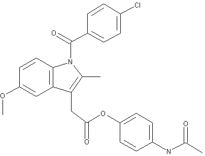 The esterification of indomethacin (I) with paracetamol (II) in the presence of DCC is performed in pyridine to afford apyramide, which is recrystallized in isopropanol.