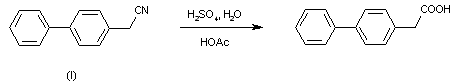 By hydrolysis of 4-biphenylacetonitrile (I) in a refluxing mixture of H2SO4, water and acetic acid.