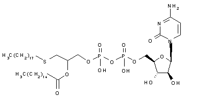 Compound is obtained by reaction of phosphoric acid 2-(hexadecanoyloxy)-3-(hexadecylsulfanyl)propyl monoester (I) with 1-[5-O-[4-morpholinyl(hydroxy)phosphoryl]-beta-D-arabinofuranosyl]cytosine (II).