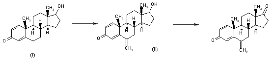 The methylenation of androsta-1,4-dien-17beta-ol-3-one (I) with paraformaldehyde and dimethylamine hydrochloride in isopentanol, at a temperature of at least 130 C, gives 6-methylenandrosta-1,4-diene-17beta-ol-3-one (II). Subsequent oxidation with Jones reagent in acetone, at approx. -10 C, yields exemestane.