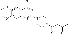 This compound can be obtained by the reaction of 6,7-dimethoxy-2-(1-piperazinyl)-4-quinazolineamine (I) with beta-butyrolactone (II).