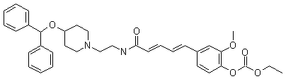 TMK 688 is derived trom the condensation ot 5-(3'-methoxy-4'-hydroxyphenyl)-2,4-pentadienoic acid (IV) and N-aminoethyl 4-diphenylmethoxypiperidine (X) in the presence of ethyl chloroformate in dichloromethane. Synthesis of intermediate (IV): Vanillin (I) is protected with ethyl chloroformate to give (II), which is then treated with triethyl 4-phosphonocrotonate and followed by alkali hydrolysis to produce (IV).