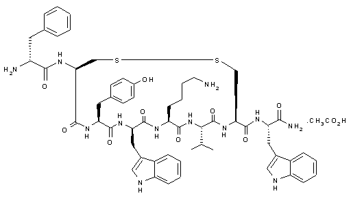 Coupling of Boc-Trp-OH (I) onto BHA resin by means of diisopropylcarbodiimide (DIPCDI) and HOBt in DMF followed by Boc removal by treatment with TFA in CH2Cl2 in the presence of mercaptoethanol provides on resin amino acid (II), which is converted into dipeptide (III) by coupling with Boc-Cys(Mbz)-OH by means of DIPCDI and HOBt followed by Boc removal by means of TFA in CH2Cl2. The same protocol of coupling and deprotection is followed for the incorporation of Boc-Val-OH and Boc-Lys(2-ClZ)-OH to furnish anchored tripeptide (IV), which is converted into protected octapeptide (V) by sequential amino acid couplings and deprotections by following the protocol described above. Simultaneous cleavage and protecting groups removal of resin (V) by treatment with HF in the presence of cresol and 1,2-ethanedithiol provides linear peptide (VI), which is finally oxidized by means of potassium ferrocyanide to furnish the desired product.
