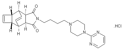 Reaction of 1,3,5,7-cyclooctatetraene (I) with maleimide (Step a, b), or maleic anhydride (Step c), in refluxing toluene affords the imide (II) or the anhydride (III) in 78 and 85% yields, respectively. Reaction of imide intermediate (II) with 1,4-dibromobutane gives the omega-haloalkylimide, which subsequently is reacted with 1-(2-pyrimidinyl)piperazine to yield Wy-47846 (Method A). Alternatively, Wy-47846 can be prepared via the reaction of (III) with 1-(4-aminobutyl)-4-(2-pyrimidinyl)piperazine in refluxing pyridine (Method B), as shown in scheme. Wy-47846 is achiral.