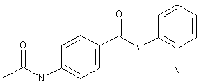 The reaction of 4-(acetamido)benzoic acid (I) with oxalyl chloride in DMF gives 4-(acetamido)benzoyl chloride (II), which is condensed with 2-nitroaniline (III) by means of pyridine in ethyl acetate yielding 4-(acetamido)-N-(2-nitrophenyl)benzamide (IV). Finally, the nitro group of (IV) is reduced with H2 over Pd/C in THF.