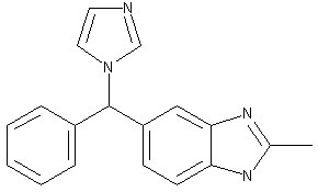 The cyclization of 3,4-diaminobenzophenone (I) with acetylimidic acid ethyl ester (II) in refluxing methanol gives 5-benzoyl-2-methylbenzimidazole (III), which is reduced with NaBH4 in methanol yielding 5-(alpha-hydroxybenzyl)-2-methylbenzimidazole (IV). Finally, this compound is condensed with imidazole (V) in refluxing acetonitrile.