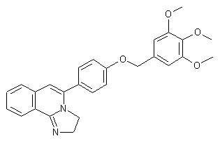 The reaction of 2-(2-methylphenyl)-4,5-dihydro-1H-imidazole (I) with n-BuLi in tetramethylethylenediamine gives the dilithium salt (II), which is cyclized with 4-(3,4,5-trimethoxybenzyloxy)benzoic acid methyl ester (III), yielding imidazoquinoline (IV). Finally, this compound is dehydrated in refluxing acetic acid or in refluxing toluene catalyzed by p-toluenesulfonic acid.