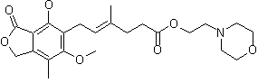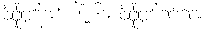 Commercially available mycophelonic acid (I) is converted to its chloride (II) by means of thionyl chloride in dichloromethane/DMF and then esterified with 2-(4-morpholinyl)ethanol (III) in dichloromethane.