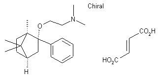 Grignard addition of phenylmagnesium bromide to (+)-camphor (I) yielded the endo-alcohol (II), which was reacted with 1-dimethylamino-2-chloroethane (III) to give the base corresponding to EGYT-3886. EGYT-3886 is the 2-(E)-butenedioate salt (1:1).