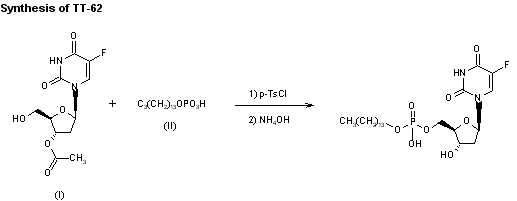 By condensation of 3'-O-acetyl-5-fluoro-2'-deoxyuridine (I) with tetradecylphosphoric acid (II) by means of tosyl chloride in anhydrous pyridine followed by deacetylation with ammonia and formation of the sodium salt.
