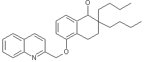 Alkylation of 5-methoxytetralone (I) with n-butyl iodide in the presence of lithium diisopropylamide (LDA) in dimethoxyethane afforded a mixture of mono- (II) and dialkylated (III) compounds that were separated by column chromatography. Hydrolysis of methoxy group of (III) by treatment with AlBr3 in refluxing benzene yielded phenol (IV), which was converted to ether (VI) by treatment with 2-(chloromethyl)quinoline (V) and K2CO3. The reduction of ketone (VI) with NaBH4 in MeOH provided racemic alcohol (VII). Resolution of racemate (VII) was performed by esterification with (S)-O-methylmandeloyl chloride (VIII), followed by chromatographic separation of the diastereomeric mixture. Then, basic hydrolysis of pure diastereomer (IX) provided the (+)-enantiomer. Alternatively, asymmetric reduction of tetralone (VI) with LiAlH4 in cold THF in the presence of the chiral auxiliary (S)-4-anilino-3-methylamino-1-butanol (X) or (S)-2-amino-3-methyl-1,1-diphenyl-1-butanol (XI) afforded (+)-alcohol (respectively).