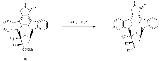 The title compound was prepared by reduction of ester function of compound K-252 (I) by means of LiAlH4 in THF.