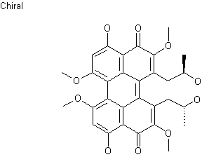 The bromination of 3,5-dimethoxybenzyl alcohol (I) with NBS gives 2-bromo-3,5-dimethoxybenzyl alcohol (II), which is treated with I2 and triphenylphosphine to yield the benzyl iodide (III). The reaction of (III) with triethyl phosphite affords the phosphonate (IV), which is condensed with the silylated aldehyde (V) by means of lithium hexamethyldisylazide (LiHMDS) giving the silylated pentenol (VI). The reaction of (VI) with chromium hexacarbonyl and BuLi provides the organochromium derivative (VII), which is cyclized with tert-butyl isocyanide and TBAF to afford the naphthalene (VIII). The benzoylation of the OH group of (VIII) with benzoyl chloride gives the benzoate (IX), which is oxidized with dichlorodicyanobenzoquinone (DDQ) to yield the naphthoquinone (X). The oxidative cyclization of (X) with O2 and TFA affords the pentacyclic quinone as a mixture of isomers that was thermally equilibrated to a 3:1 mixture of the desired isomer (XI) (the undesired isomer was recycled).The methylation of (XI) with methyl iodide and TBAF gives the fully methylated perylenequinone (XII), which is selectively demethylated with MgI2 to afford the target Calpostin A.