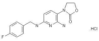 D-19274 can be obtained in a 6-step synthesis starting from 2,6-dichloropyridine (I). Compound (I) is nitrated with HNO3/H2SO4 yielding 2,6-dichloro-3-nitropyridine (II). Subsequent reaction with ammonia and 4-fluorobenzylamine leads to 2-amino-3-nitro-6-(4-fluorobenzylamino)pyridine (IV), which is hydrogenated using Raney Nickel as catalyst to the corresponding 3-amino derivative (V), which reacts with 2-bromoethyl chloroformate to 2-bromoethyl [N-(2-amino-6-(4-fluorobenzylamino)pyridin-3-yl)]carbamate hydrochloride (VI). (VI) is then treated with excess NaOH at 35 C, followed by treatment with isopropanol HCl to give the desired D-19274.