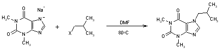 By reaction of theophylline sodium salt with isobutyl halogenide in N,N-dimethylformamide at 80 C.