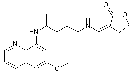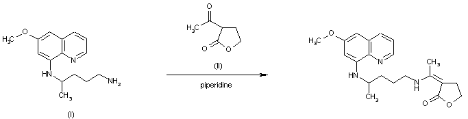 The title enamine derivative was prepared by condensation of primaquine (I) with acetyl butyrolactone (II) in the presence of piperidine.