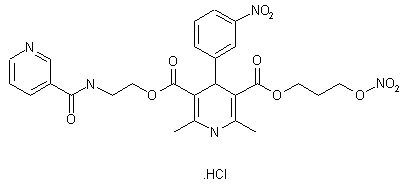 CD-832.HCl can be obtained by several different ways: 1) The cyclization of benzaldehyde (IX) with acetoacetate (V) and crotonate (VII) in refluxing isopropanol gives 2,6-dimethyl-4-(3-nitrophenyl)-1,4-dihydropyridine-3,5-dicarboxylic acid 3-(2-cyanoethyl) 5-[2-(3-pyridylcarboxamido)ethyl] diester (X), which by reaction with tetrabutylammonium fluoride in THF/DMF, or with Na2S in dichloromethane/methanol, eliminates vinyl cyanide yielding the dihydropyridine monoester (XI). Finally, this compound is esterified with (XII) by means of acetyl chloride and acetic anhydride in dichloromethan). 2) The cyclization of benzaldehyde (IX) with crotonate (VI) and acetoacetate (VIII) as before also gives dihydropyridine (X). 3) The reaction of benzaldehyde (IX) with acetoacetate (V) by means of piperidinium acetate in refluxing benzene gives the corresponding 3-nitrobenzylidene derivative (XIII), which is then cyclized with crotonate (VII) to afford the previously obtained dihydropyridine (X). 4) The reaction of benzaldehyde (IX) with acetoacetate (V) by means of piperidinium acetate in refluxing benzene gives the 3-nitrobenzylidene derivative (XIII), which is then cyclized with 3-aminocrotonic acid ester (XIV) in refluxing isopropanol.