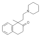 Friedel-Crafts condensation of 2-phenylpropionyl chloride (I) with ethylene in the presence of AlCl3 furnished 1-methyl-1,2,3,4-tetrahydronaphthalen-2-one (II) (1). Subsequent alkylation of the sodium enolate of (II) with N-(2-chloroethyl)piperidine (III) gave rise to the title compound.