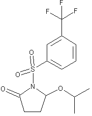 Sodium borohydride reduction of succinimide in isopropanol, according to the Speckamp's procedure, gives 5-isopropoxy-2-pyrrolidinone. Condensation with 3-trifluoromethylbenzenesulfonyl chloride (2) is effected with n-butyllithium in tetrahydrofuran at low temperature to give RU-47067 in an overall yield of 38%.