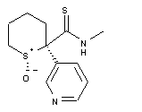 The reaction of 3-(chloromethyl)pyridine (I) with thiourea (II) in ethanol gives S-(3-pyridylmethyl)isothiourea (III), which is condensed with 4-chlorobutyl bromide (IV) by means of NaOH in dichloromethane to yield 3-(4-chlorobutylsulfanylmethyl)pyridine (V). The careful oxidation of (V) with MCPBA in dichloromethane affords the corresponding sulfoxide (VI), which is cyclized by means of potassium tert-butoxide in THF, providing a mixture of cis- and trans-2-(3-pyridyl)tetrahydrothiopyran S-oxide (VII + VIII). This mixture can be separated by conventional methods; however, when this mixture (VII + VIII), or either (VII) or (VIII) separately, are treated with NaNH2 and methyl isothiocyanate, only the target (1RS,2RS)-compound is obtained. Alternatively, the mixture (VII + VIII) or either (VII) or (VIII) can also be treated with potassium tert-butoxide, CS2 and methyl iodide to yield the (1RS,2RS)-dithioester (IX), which is finally converted into the target compound by reaction with methylamine.