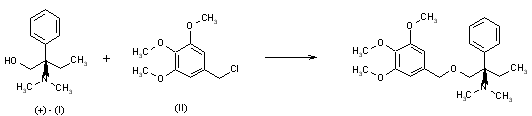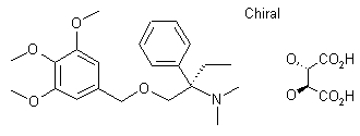Fedotozine (-)-tartrate can be prepared by two different methods: a) Conventional resolution in ethanol of racemic (?-N,N-dimethyl-1-[(3,4,5-trimethoxybenzyl)oxymethyl]-1-phenyl-n-propylamine with (-)-tartaric acid. b) Condensation of (+)-2-dimethylamino-2-phenyl-n-butanol (I) with 3,4,5-trimethoxybenzyl chloride (II) gives (+)-N,N-dimethyl-1-[(3,4,5-trimethoxybenzyl)oxymethyl]-1-phenyl-n-propylamine, which is salified with (-)-tartaric acid in ethanol to give fedotozine (-)-tartrate.