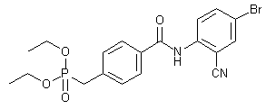 By condensation of 4-(chloroformyl)benzylphosphonic acid diethyl ester (I) with 2-amino-5-bromobenzonitrile (II) by means of dimethylaminopyridine (DMAP) and triethylamine in dichloromethane.