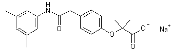 Reaction of 4-hydroxyphenylacetic acid (I) with refluxing SOCl2, followed by treatment of the resulting polymeric phenol ester with 3,5-dimethylaniline (II) in refluxing xylene provided amide (III). Condensation of this compound with acetone and chloroform in the presence of powdered NaOH yielded the corresponding isobutyric acid derivative.
