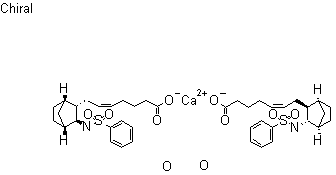 The condensation of bicyclo[2.2.1]hept-5-ene-2,3endo-dicarboxylic acid anhydride (I) with 2(R)-hydroxy-2-phenylacetic acid benzyl ester (II) by means of BuLi in THF gives the unsaturated hemiester (III), which is reduced with H2 over Pd/C in methanol yielding the saturated hemiester (IV). The trans-esterification of (IV) with NaOMe in refluxing methanol affords (1R,2S,3S,4S)-bicyclo[2.2.1]heptane-2,3-dicarboxylic acid 2-monomethyl ester (V), which by reaction first with ethyl chloroformate and triethylamine and then with ammonia is converted into the amide ester (VI). Hydrolysis of (VI) with KOH gives (1R,2S,3S,4S)-3-carbamoylbicyclo[2.2.1]heptane-2-carboxylic acid (VII), which by degradation with NaOCl and NaOH is converted to the corresponding amino acid (VIII). The acylation of (VIII) with benzenesulfonyl chloride yields (1R,2S,3S,4S)-3-(phenylsulfonamido)bicyclo[2.2.1]heptane-2-carboxylic acid (IX), which is reduced with NaBH4 in dimethoxyethane giving the corresponding methanol (X). The oxidation of (X) with oxalyl chloride in dichloromethane-DMSO affords the aldehyde (XI), which by a Wittig condensation with methoxymethyl triphenylphosphonium chloride and t-BuOK in THF is converted to the ether (XII). The hydrolysis of (XII) with formic acid gives the corresponding aldehyde (XIII), which by a new Wittig condensation with 4-carboxybutyl triphenylphosphonium bromide and t-BuOK in THF gives (+)-[1R,2S(5Z),3S,4S]-7-[3-(phenylsulfonamido)bicyclo[2.2.1]hept-2-yl]-5-heptenoic acid (XIV). Finally, this compound is converted into the corresponding calcium salt with CaCl2 in water.