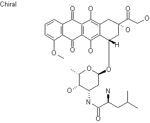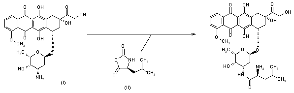By condensation of doxorubicin hydrochloride (I) with L-leucine N-carboxyanhydride (II) in a buffered aqueous solution at pH 10.2.