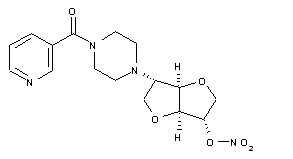 The preparation of KW-3196 is as follows: Reaction of 1,4:3,6-dianhydro-D-glucitol 5-methanesulfonate (I) (1) with piperazine (II) afforded (III), which was nitrated with fuming HNO3 to give the nitrate ester (IV). Nicotynoylation of (IV) gave KW-319).