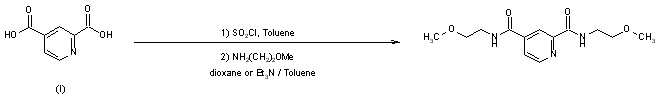 Lufironil is obtained by treatment of 2,4-pyridinedicarboxylic acid (I) with thionyl chloride in toluene, followed by reaction with 2-methoxyethylamine, either in dioxane (1) or in toluene in the presence of triethylamine.