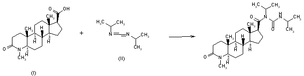 1) By the reaction of 4-methyl-3-oxo-4-aza-5alpha-androstane-17beta-carboxylic acid (I) with diisopropylcarbodiimide (II) in methylene chloride at room temperature.