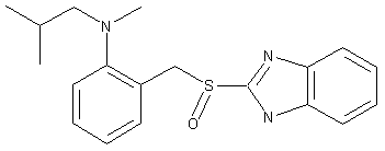 The acylation of methylanthranilate (I) with isobutyryl chloride (II) gives 2-isobutyramidobenzoic acid methyl ester (III), which is reduced with LiAlH4 to 2-(isobutylamino)benzyl alcohol (IV). The methylation of (IV) with dimethyl sulfate yields 2-(N-isobutyl-N-methylamino)benzyl alcohol (V), which is treated with SOCl2 to afford the corresponding benzyl chloride (VI). The condensation of (VI) with benzimidazole-2-thiol (VII) by means of NaOH yields 2-[2-(N-isobutyl-N-methylamino)benzylsulfanyl)benzimidazole (VIII), which is finally oxidized with m-chloroperbenzoic acid (MCPBA) as usual.