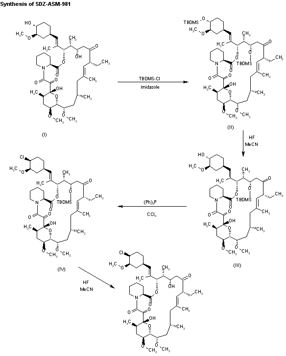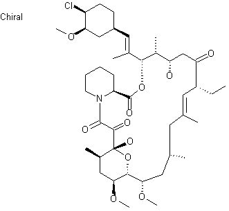 The silylation of the known compound FK-520 by means of tert-butyldimethylsilyl chloride (TBDMS-Cl) and imidazole in DMF gives the disilylated compound (II), which is selectively monodesilylated by means of 40% HF in acetonitrile for 2 h at 0 C yielding the monosilylated compound (III). The chlorination of (III) by means of triphenylphosphine in refluxing CCl4 gives the chloro derivative (IV), which is finally desilylated with 40% HF in acetonitrile at room temperature.