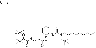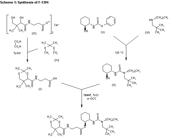 By esterification of the acetonide of pantothenic acid (I) with (1S,2S)-2-[3-(2,2-dimethylpropyl)-3-nonylureido]-cyclohexanol (II) by means of dimethylaminopyridine (DMAP) and tosyl chloride in ethyl acetate (1) or DMAP and dicyclohexylcarbodiimide (DCC) in refluxing toluene (2). The starting compounds (I) and (II) have been prepared as follows: 1) The cyclization of pantothenic acid calcium salt (III) with 2,2-dimethoxypropane (IV) by means of oxalic acid and p-toluenesulfonic acid in refluxing acetones gives the acetonide (I). 2) The condensation of the carbamate (V) with the secondary amine (VI) by heating at 120 C yields the urea derivative (II).