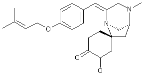 Intermediate (XV) is submitted to cyclization by means of trifluoroacetic anhydride (TFAA) and TEA in DMSO furnishing the spiranic 1,4-diazabicyclo[3.2.1]heptane derivative (XVI). The oxidation of (XVI) with DDQ in dichloromethane provides eniminium salt (XVII), which is reduced with NaCNBH3 to afford the butyleneketal intermediate that is deprotected with HCl in aqueous acetone yielding the TAN-1251a (XVIII). Finally, this compound is treated with LDA in THF giving a mixture of enolates that is quenched with TMSCl. This mixture of silyl enolates is oxidized with OsO4 in aqueous tert-butanol yielding a mixture of hydroxylated compounds that is resolved by a cumbersome chromatographic separation on a reverse phase HPLC column, followed by a chiral Chiralpak AD column.