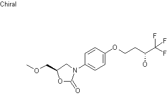 Befloxatone is obtained by condensation of 1,1,1-trifluoro-4-(tosyloxy)-2(R)-butanol (I) with 3-(4-hydroxyphenyl)-5(R)-(methoxymethyl)oxazolidin-2-one (II) by means of K2CO3 in hot DMF.