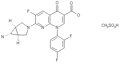 Trovafloxacin can be obtained by two related ways: 1) The cyclization of ethyl diazoacetate (I) with N-benzylmaleimide (II) in ethyl ether gives 5-benzyl-4,6-dioxo-1,3a,4,5,6,6a-hexahydropyrrolo[3,4-c]pyrazole-3-carboxylic acid ethyl ester (III), which by thermolysis at 185 C is converted into (1alpha,5alpha,6alpha)-3-benzyl-2,4-dioxo-3-azabicyclo[3.1.0]hexane-6-carboxylic acid ethyl ester (IV). The reduction of (IV) with LiAlH4 in refluxing THF affords (1alpha,5alpha,6alpha)-3-benzyl-6-(hydroxymethyl)-3-azabicyclo[3.1.0] hexane (V), which is debenzylated by hydrogenolysis with H2 over Pd/C in methanol to the free azabicyclo compound (VI) (1, 2). The reaction of (VI) with benzyl chloroformate and NaHCO3 in doxane/water yields the corresponding N-benzyloxycarbonyl compound (VII), which is oxidized with the Jones reagent to (1alpha,5alpha,6alpha)-3-(benzyloxycarbonyl)-3-azabicyclo[3.1.0]hexane-6-carboxylic acid (VIII). The reaction of (VIII) with diphenylphosphoryl azide (DPA) and triethylamine in refluxing tert-butanol gives (1alpha,5alpha,6alpha)-3-(benzyloxycarbonyl)-6-(tert-butoxycarbonylamino)-3-azabicyclo[3.1.0]hexane (IX), which is submitted to hydrogenolysis with ammonium formate over Pd/C to afford (1alpha,5alpha,6alpha)-6-(tert-butoxycarbonylamino)-3-azabicyclo[3.1.0] hexane (X). The condensation of (X) with 7-chloro-1-(2,4-difluorophenyl)-6-fluoro-4-oxo-1,4-dihydro-1,8-naphthyridine-3-carboxylic acid ethyl ester (XI) by means of triethylamine in hot acetonitrile gives (1alpha,5alpha,6alpha)-7-[6-(tert-butoxycarbonylamino)-3-azabicyclo [3.1.0]hex-3-yl]-1-(2,4-difluorophenyl)-6-fluoro-4-oxo-1,4-dihydro-1,8-naphthyridine-3-carboxylic acid ethyl ester (XII) (1-3), which is finally deprotected with refluxing 6N HCl (1) or methanesulfonic acid in dioxane/water. The cyclization of 1-(benzyloxycarbonyl)-2,5-dihydro-1H-pyrrole (XIII) with ethyl diazoacetate (I) gives 5-(benzyloxycarbonyl)-1,3a,4,5,6,6a-hexahydropyrrolo[3,4-c]pyrazole-3-carboxylic acid ethyl ester (XIV), which by thermolysis is converted into (1alpha,5alpha,6alpha)-3-(benzyloxycarbonyl)-2,4-dioxo-3-azabicyclo [3.1.0]hexane-6-carboxylic acid ethyl ester (XV). Finally, this compound is hydrolyzed to the desired carboxylic acid (VIII). 2) The carboxylic acid (VIII) can also be obtained as follows: