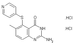 Catalytic hydrogenation of 2-bromo-4-nitrotoluene (I) over Raney-Ni provided aniline (II). Reaction of (II) with chloral hydrate and hydroxylamine gave rise to the isonitrosoacetanilide (III), which was subsequently cyclized to the isatin (IV) by heating in concentrated H2SO4. Oxidative cleavage of isatin (IV) produced the anthranilic acid (V). This was converted to the benzoxazinone (VI) upon refluxing with acetic anhydride. Ring opening of benzoxazinone (VI) with MeOH, followed by acidic hydrolysis of the acetamide function, yielded the anthranilate ester (VII). The quinazoline derivative (VIII) was then obtained by treatment of anthranilate (VII) with chloroformamidine hydrochloride in refluxing diglyme. Finally, displacement of the bromide group of (VIII) with the sodium thiolate of 4-mercaptopyridine (IX) under Ullmann conditions afforded the title pyridyl sulfide.