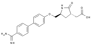 The condensation of 5(S)-(trityloxymethyl)-2-pyrrolidinone (I) with benzyl chloroformate (II) and BuLi in THF gives the carbamate (III), which is alkylated with tert-butyl 2-chloroacetate (IV) and LHMDS in THF to yield 2-[1-(benzyloxycarbonyl)-2-oxo-5(S)-(trityloxymethyl)pyrrolidin-2(S)-yl]acetic acid tert-butyl ester (V). The hydrogenation of (V) with H2 over Pd/C in hot tert-butanol affords 2-[5(S)-(hydroxymethyl)-2-oxopyrrolidin-2(S)-yl]acetic acid tert-butyl ester (VI), which is treated with MsCl and TEA in dichloromethane to provide the methanesulfonate (VII). The condensation of (VII) with 4'-hydroxybiphenyl-4-carbonitrile (VIII) by means of potassium tert-butoxide in DMF gives the adduct (IX), which by treatment with HCl in methanol, and with ammonia in the same solvent yields 2-[5(S)-(4'-amidinobiphenyl-4-yloxymethyl)-2-oxopyrrolidin-3(S)-yl]acetic acid methyl ester (X). Finally, this compound is condensed with methyl chloroformate (XI) by means of NaOH in dichloromethane to afford the target compound.