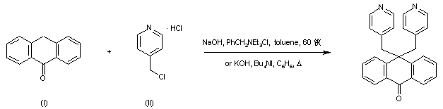 The title compound was prepared by alkylation of anthrone (I) with 4-picolyl chloride (II) in the presence of an alkaline hydroxide and a phase-transfer catalyst.