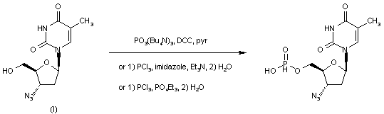 The title compound was obtained from 3'-azido-3'-deoxythymidine (I) either by treatment with tri-n-butylammonium phosphite and DCC in pyridine or by treatment with phosphorus trichloride in the presence of imidazole and Et3N in acetonitrile or in the presence of triethyl phosphate, followed by aqueous hydrolysis.